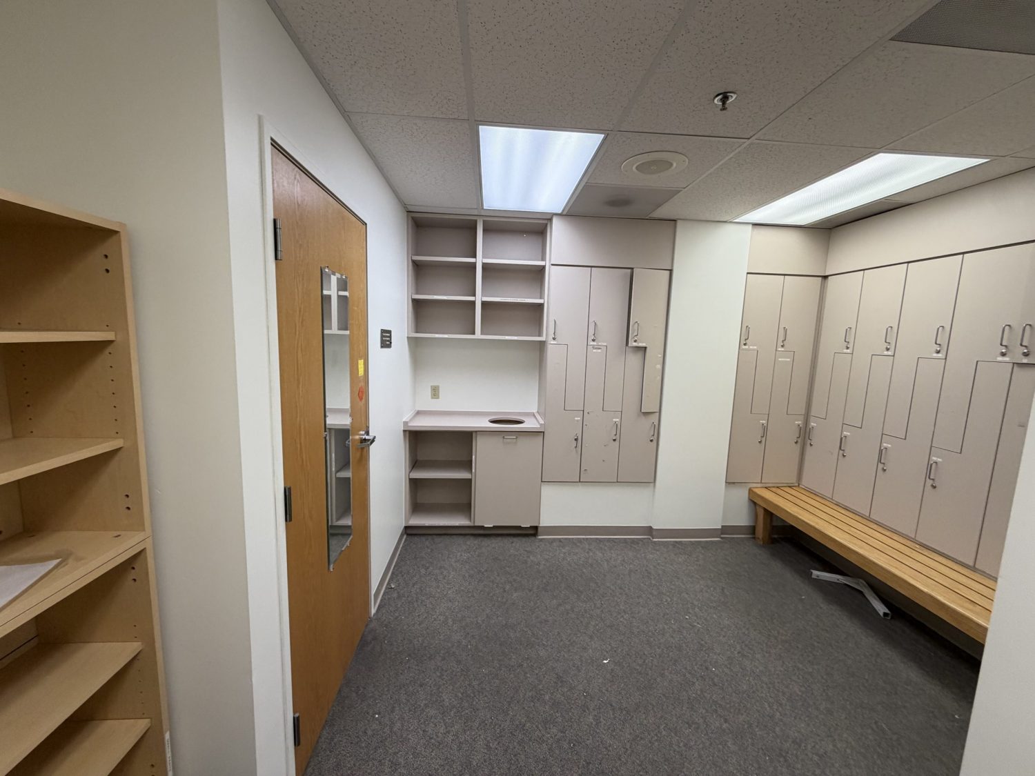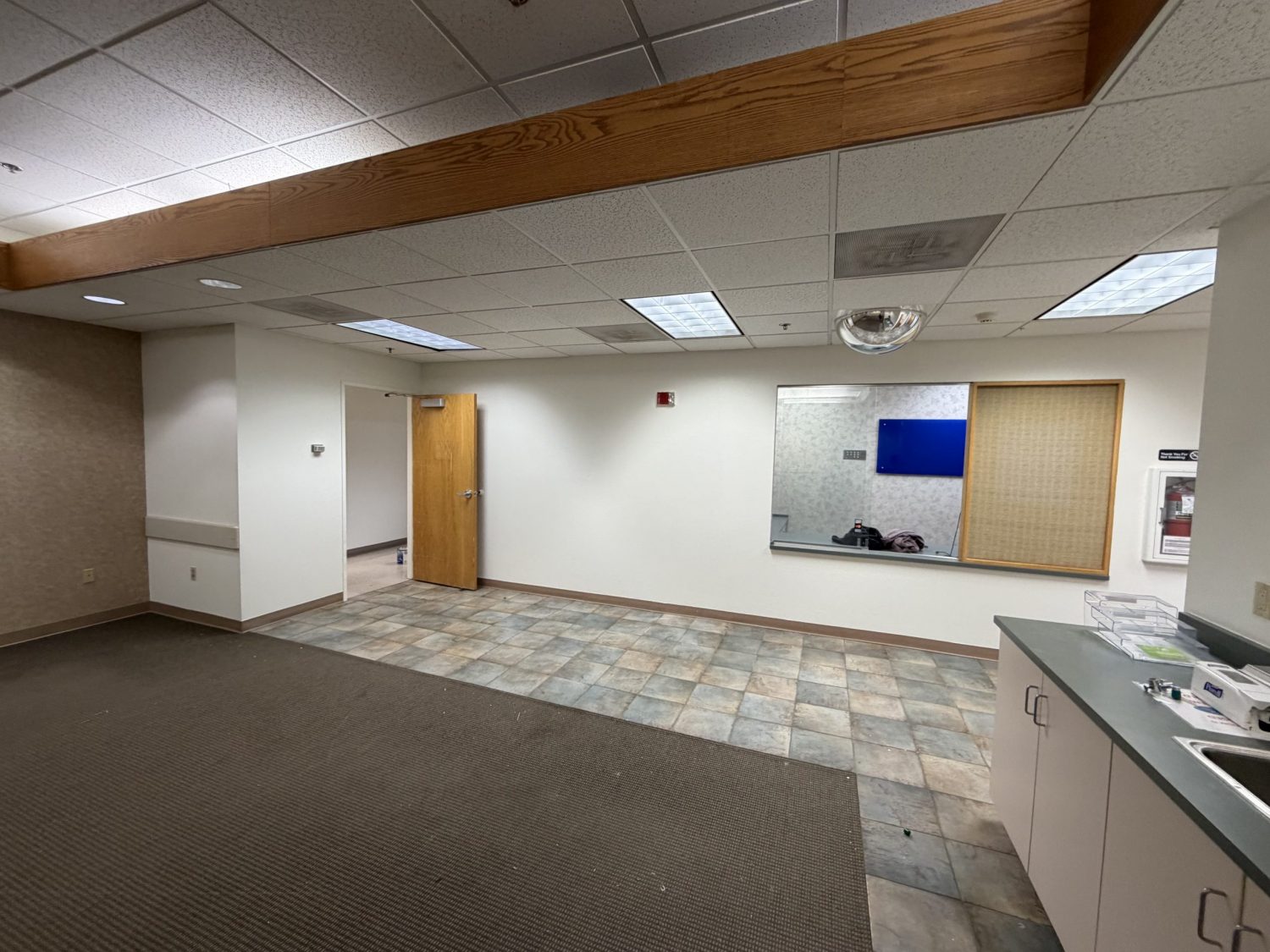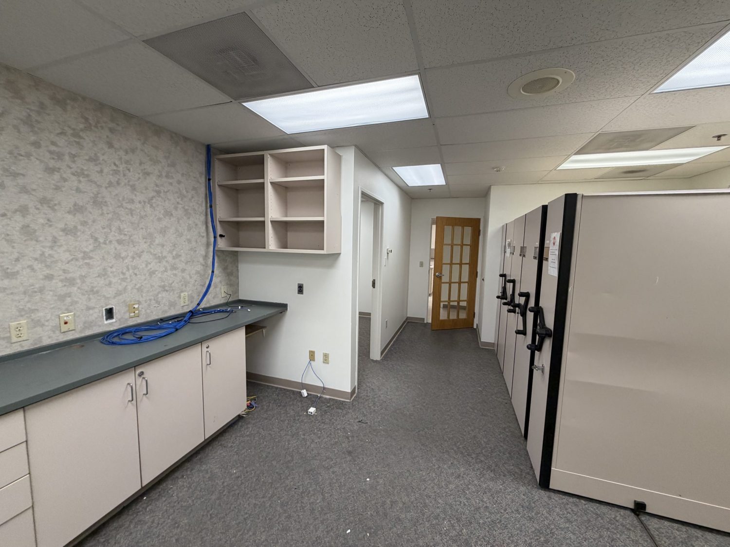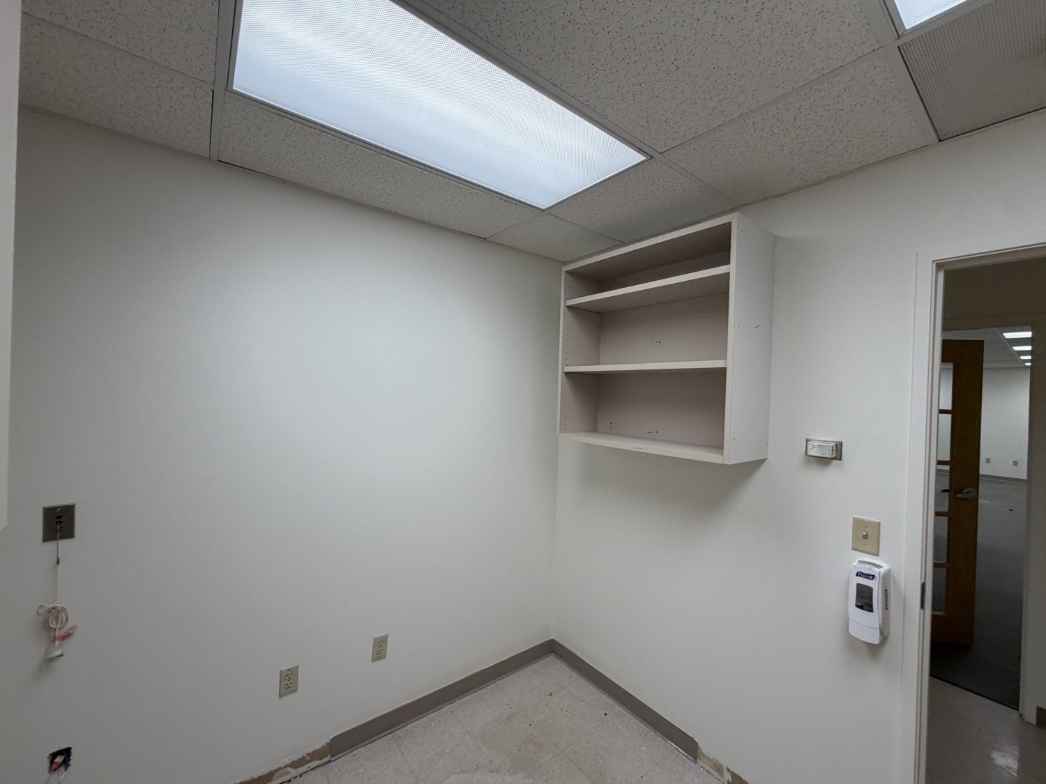 Paint the walls in certain areas in suite 100. In the break room there is wallpaper that is peeling off. We will remove that wallpaper, skim the texture, prime the walls and paint those walls