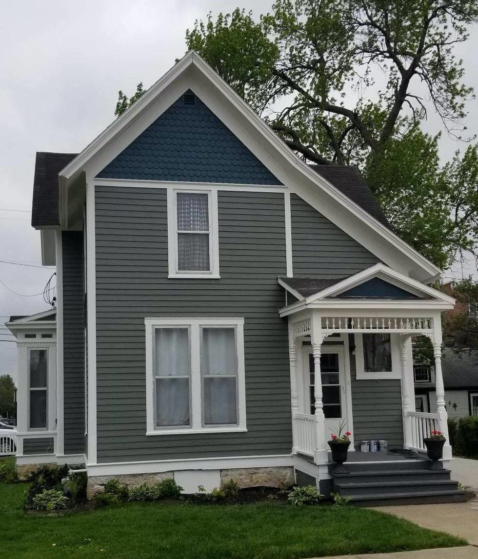 CertaPro Painters® of Cedar Rapids IA repainted the exterior of this residence to change it from a white to a striking grey and blue. Their professionals can prep and paint your home, beautifully transforming the outside to have your property looking like new again!