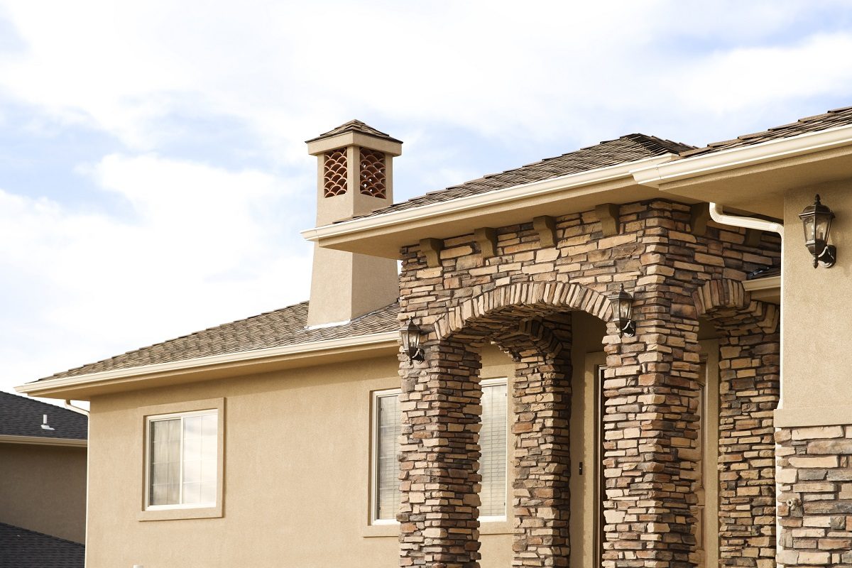 Pairing the stone and stucco of this exterior painting job allows it to stand out in a good way.