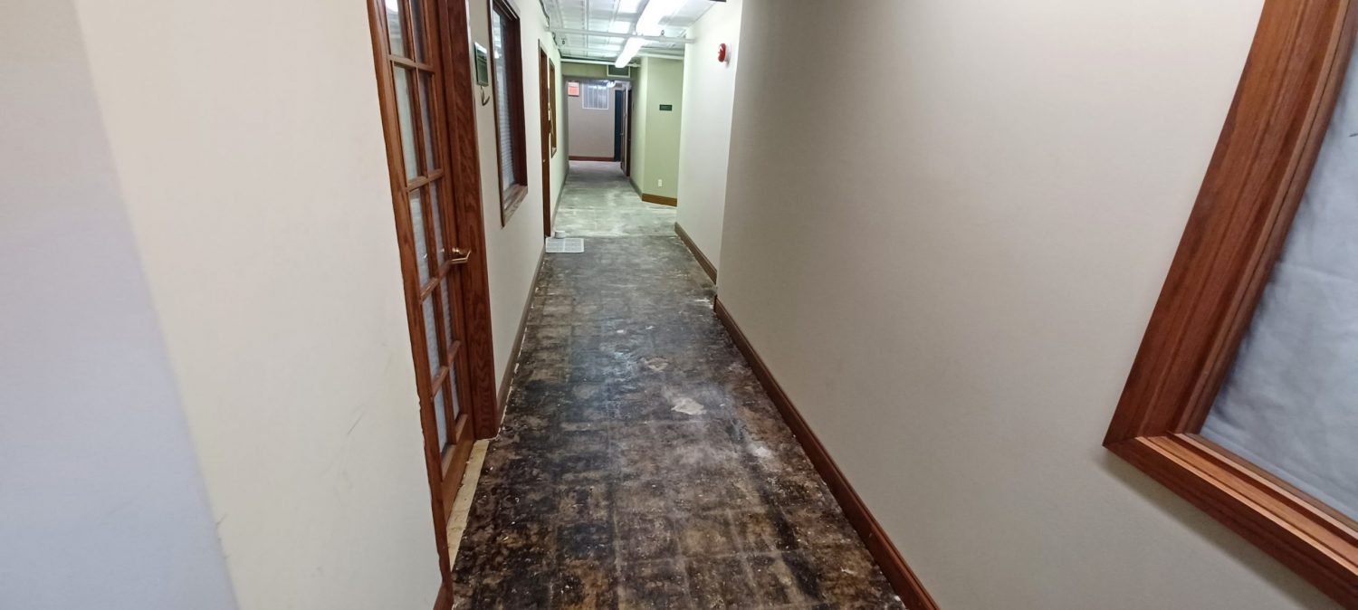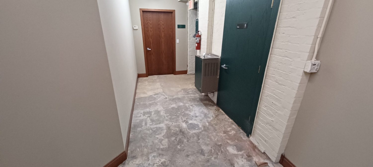 The property presented a unique set of challenges, as it houses both residential apartments and active businesses. Careful planning and communication were essential to avoid disturbing residents and to ensure that business operations continued smoothly. To accommodate these needs, portions of the job—particularly the floor coating—were completed over a weekend to align with the schedules of the businesses operating in that area.