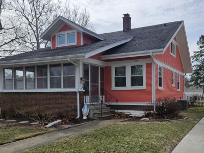 Beige siding with red shutters in Bloomington/Normal, IL