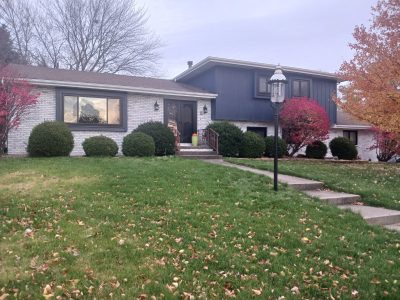 Tan siding with blue trim in Bloomington/Normal, IL