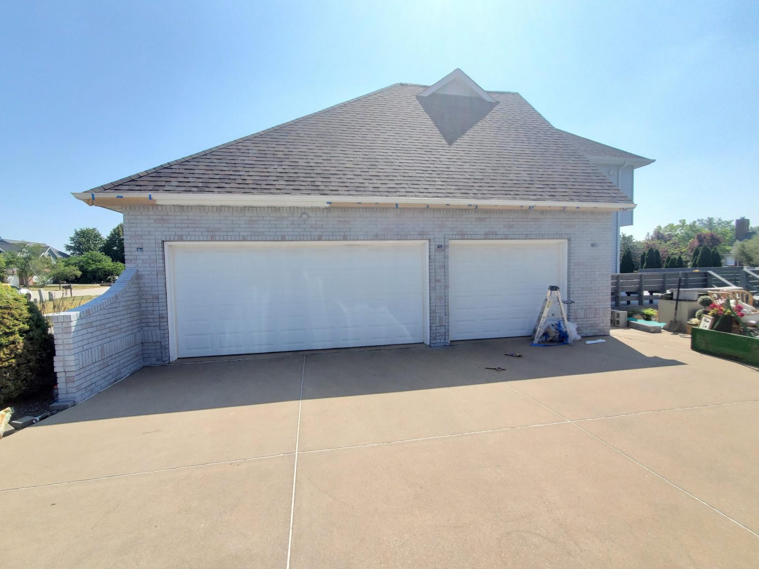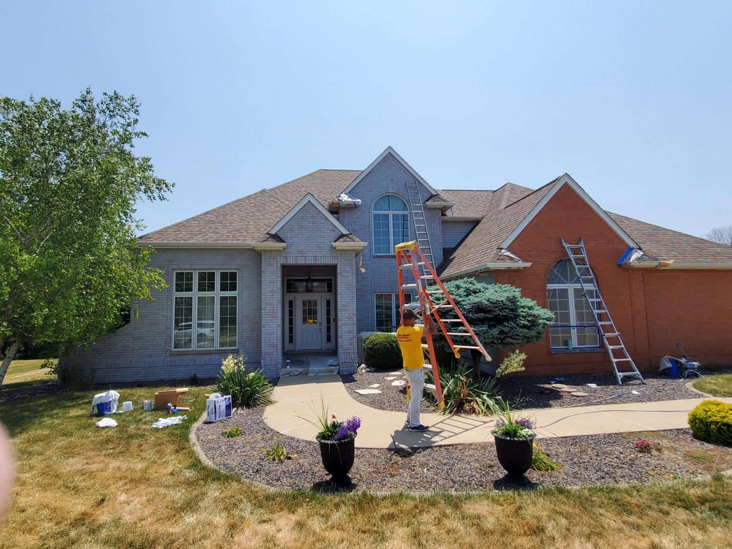 This brick house had an exterior makeover thanks to our team applying a limewash technique.