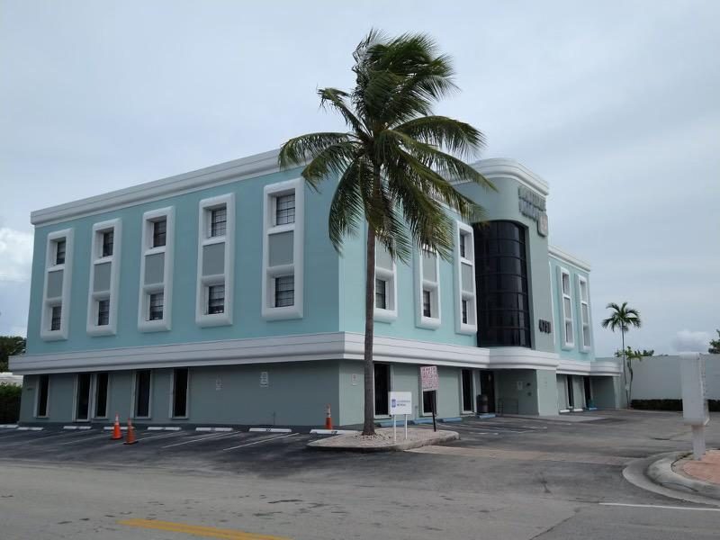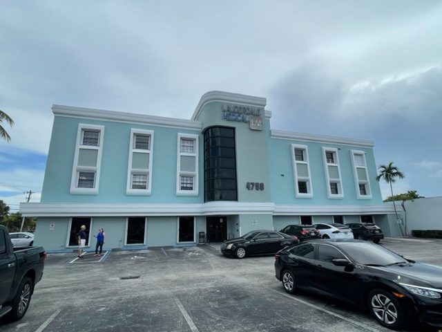 This medical facility in Miami hired us to add some fresh color to their building’s stucco exterior. Initially, the building was a typical shade of beige, which didn’t do much for the building’s curb appeal. Over the course of two weeks (including several night shifts), the exterior was transformed to be much brighter and more inviting.