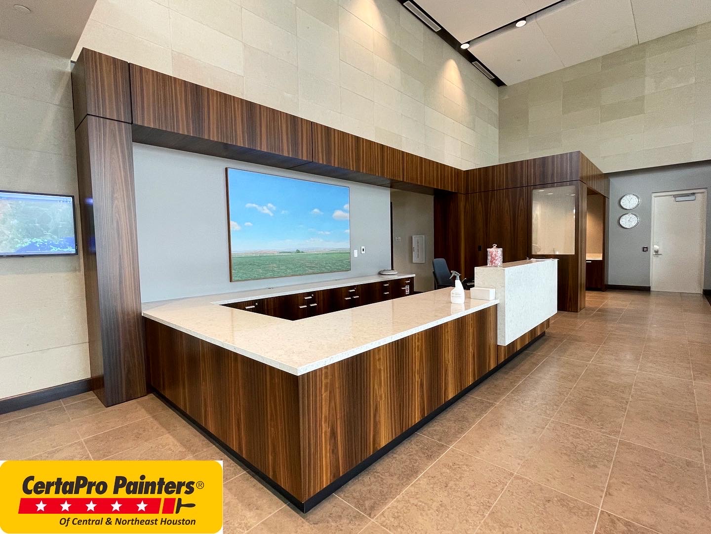 All exotic wood treated and coated with Lacquer for protection in one of the world’s largest energy provider and chemical manufacturers private hangar at IAH airport.