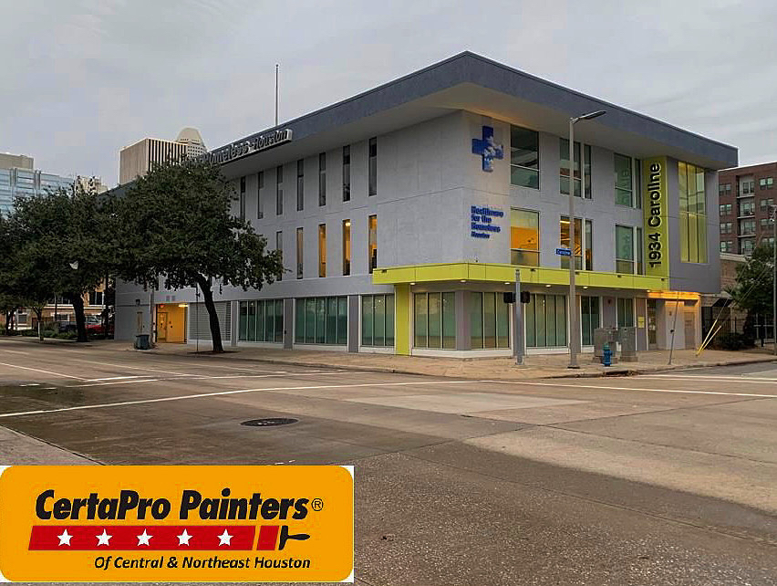 CertaPro Painters of Central & Northeast Houston completed this project of a hospital for the homeless in downtown Houston. Pressure washed, applied primer and two coats of high quality paint from Sherwin Williams.
