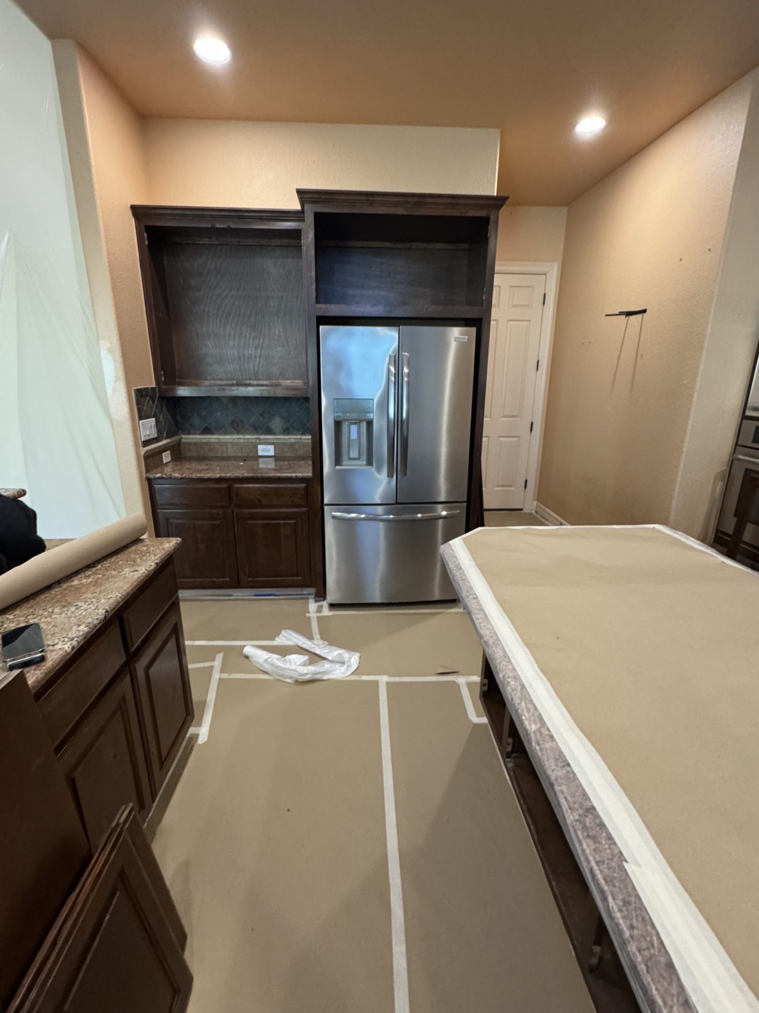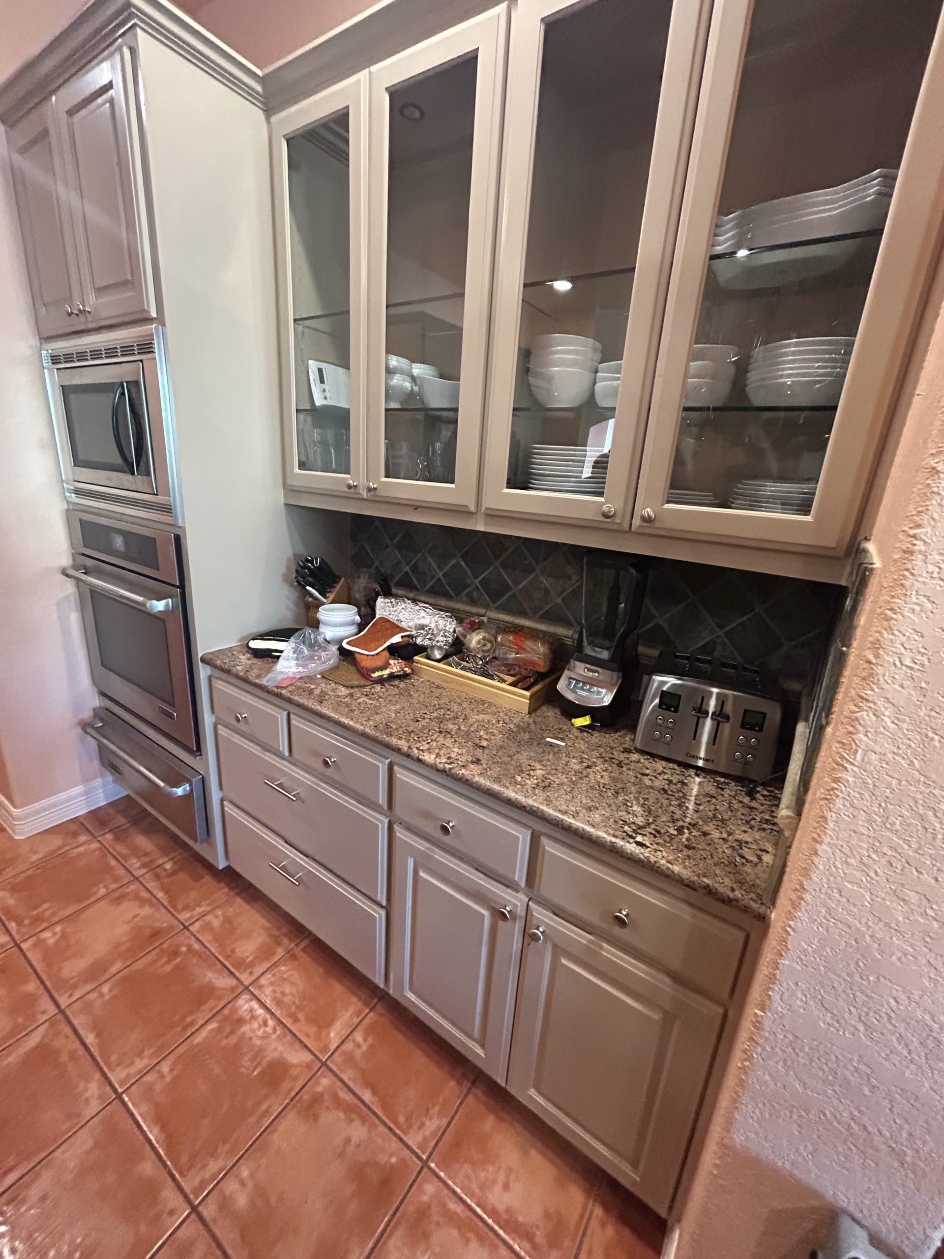 The kitchen cabinets of this Encino Park home needed a fresh look that brought more light to the room. Our team painted the interior and exterior kitchen cabinets painted the dark-colored cabinets with a subtle white color that reflected the light more and made the whole kitchen look brighter.