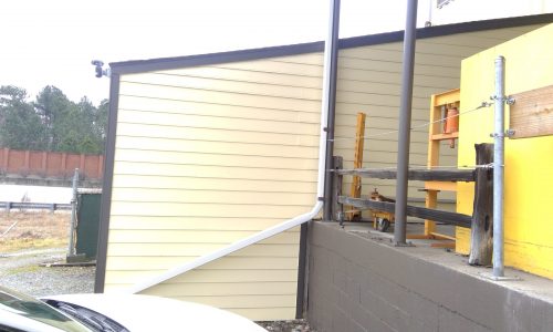 We were able to reach the areas above the awning with a 45’ articulating boom lift. To find a suitable paint we worked with our Sherwin Williams representative to determine that a new paint called Loxon Self-Cleaning was the best solution. Loxon Self-Cleaning can be applied down to 35 degrees and offers the added benefit of shedding dirt with rainwater contact. This ensures the building will stay looking great longer.