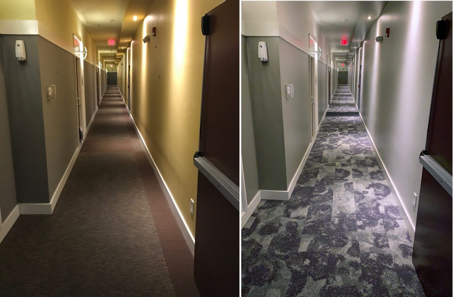 We were able to provide a special mock-up in a section of the hallways in order to allow residents to provide color feedback to the board of directors in the community. We used Stilts to help reach the higher ceilings and accent colors on the soffits and ceilings.