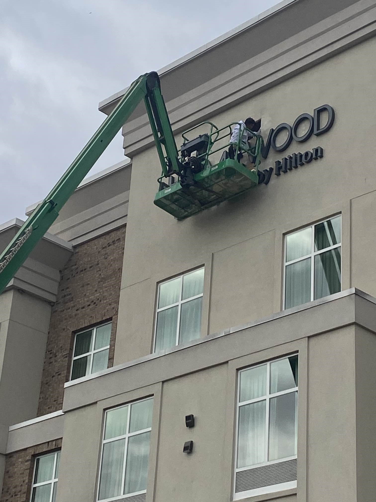 Exterior painting project of the hotel facility, Homewood Suites in the Ballantyne neighborhood.