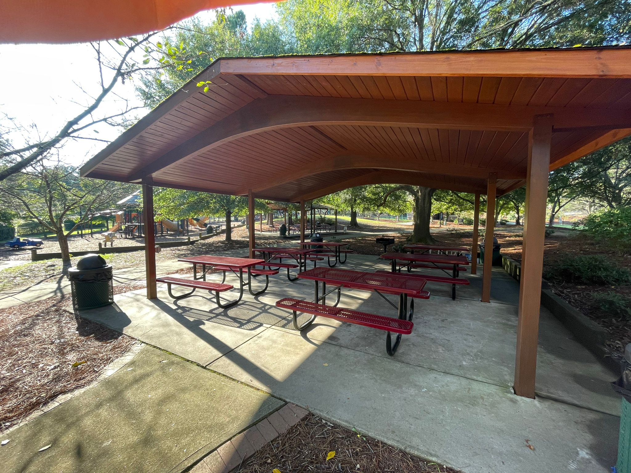 Our team helped paint and stain the sheltered picnic area or gazebos at the Kannapolis Village Park.