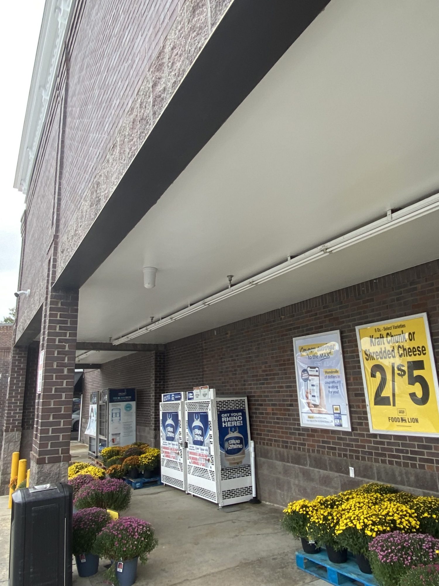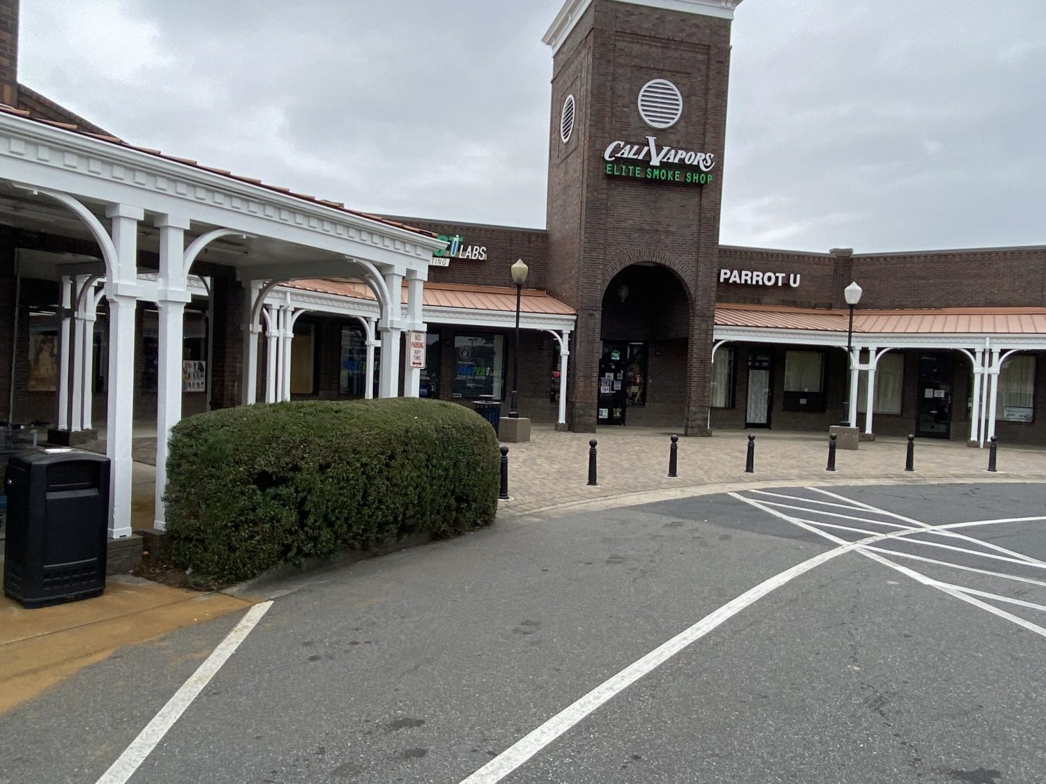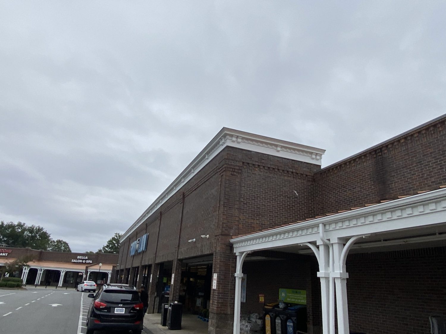 Our team had the opportunity to repaint the portico and columns of this extended sheltered hallway section of this retail shopping center in Pineville, NC.
