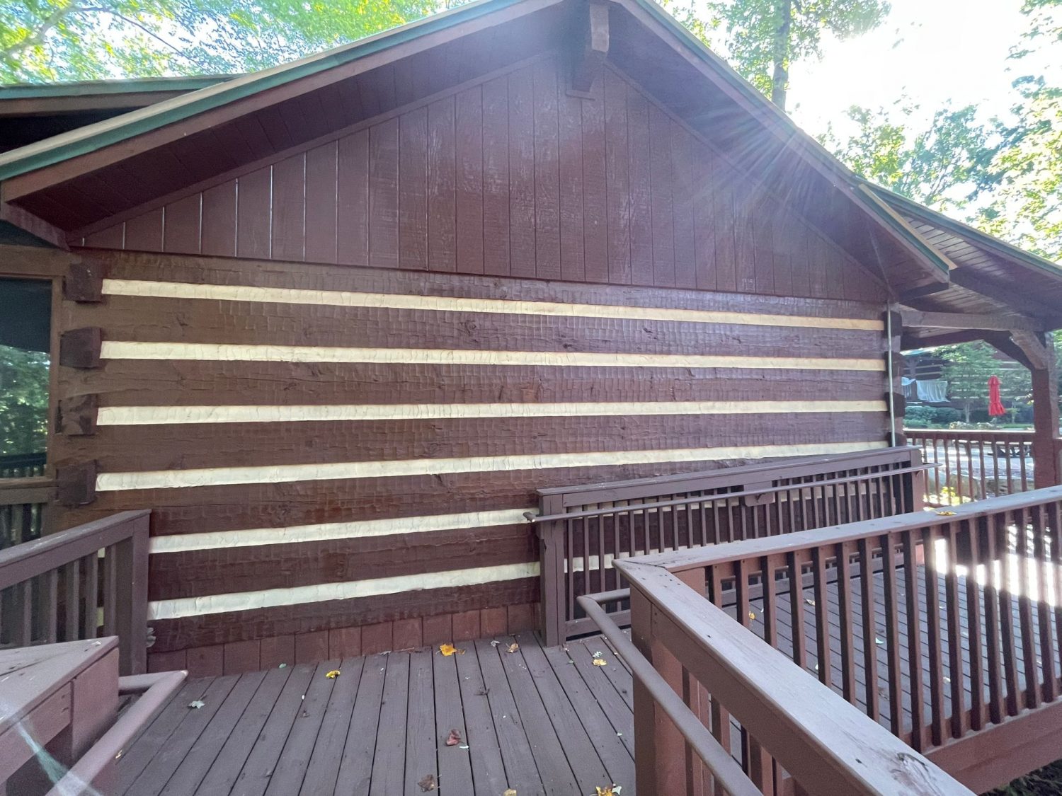 Our team had the opportunity to restain the HOA log cabin and other additional cabins at Tree Tops in Greenville, NC.