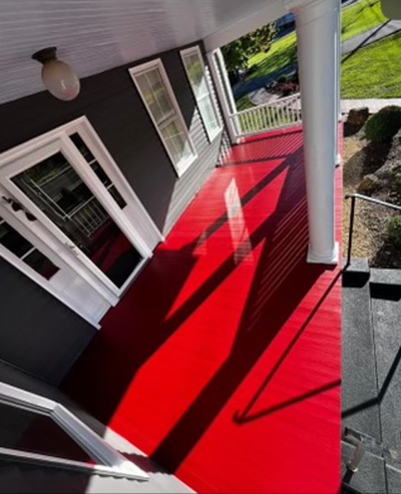 CertaPro Painters® of Charlottesville, VA gave this front porch an eye-catching update, replacing faded paint with bold and modern colors.
