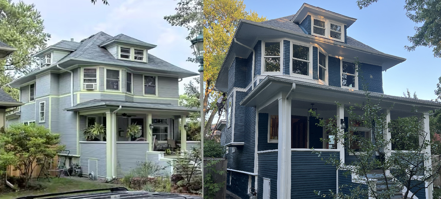 This is a textbook example of how strategic exterior painting can update and preserve a historic home while emphasizing its best architectural features. The shift from muted to bold contrast gives the home more presence and sophistication. It likely increased both aesthetic value and real estate value.