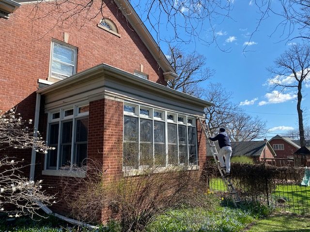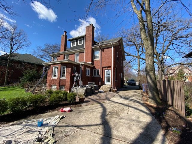 The painting professionals of CertaPro Painters of Oak Park/Chicago Central, IL replaced the soffit, pillars, shutter, windows, doors, and doorframes on this home and its garage in Beverly, IL.