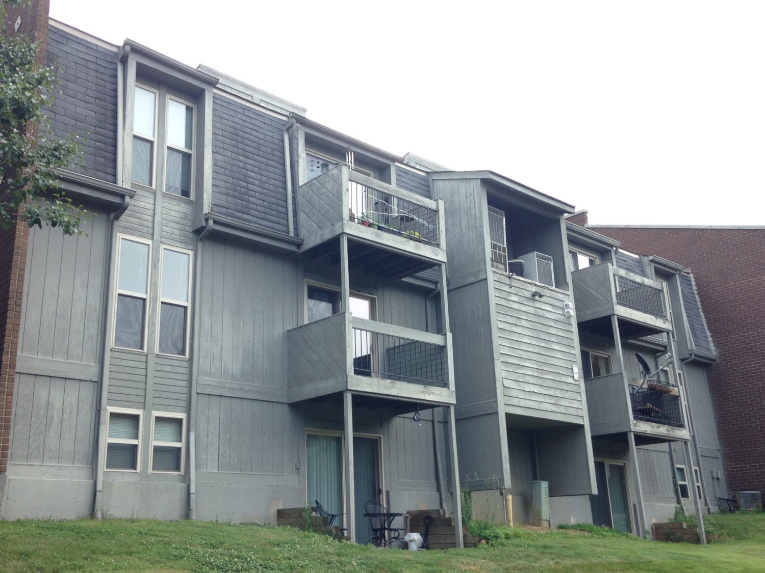 The buildings in the Arrowhead Apartments community had peeling, faded, and failing paint due to both weather and general breakdown over time. The balconies of many units had extensive wood rot and carpentry damage. There were visible replacement boards in some areas in an attempt to repair the area. Unfortunately, these areas stuck out because they were a different color from the building itself.