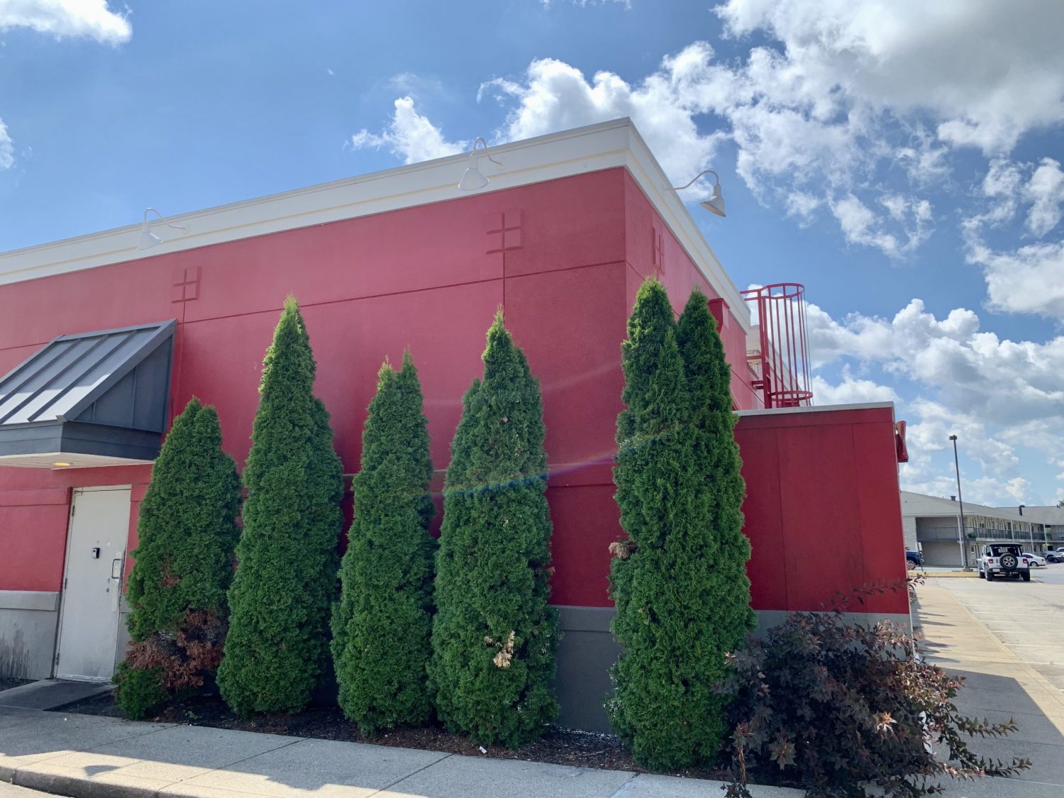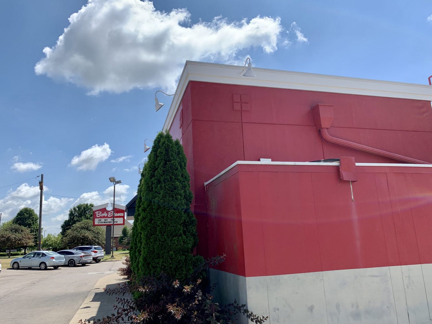 The Bob Evan’s had damage to the exterior of a certain area of the building due to a fire. The fire compromised the siding and layers of the exterior. They temporarily had these areas covered with wood.