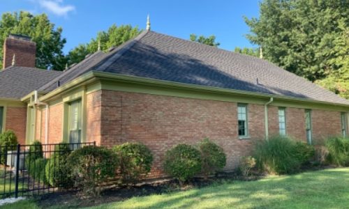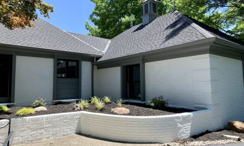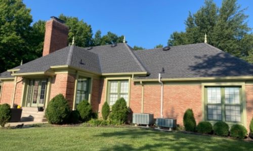 This brick home in Union, KY featured charming green accents across the exterior. The color of the brick was faded as with the paint on the accents. There was also some minor carpentry damage to certain areas. The project involved some light carpentry work, prep work and painting.