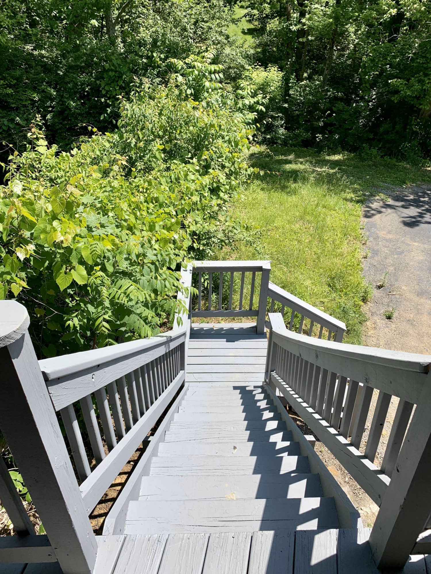 We removed and replaced the top board of the deck handrail. We also secured all of the handrail spindles.