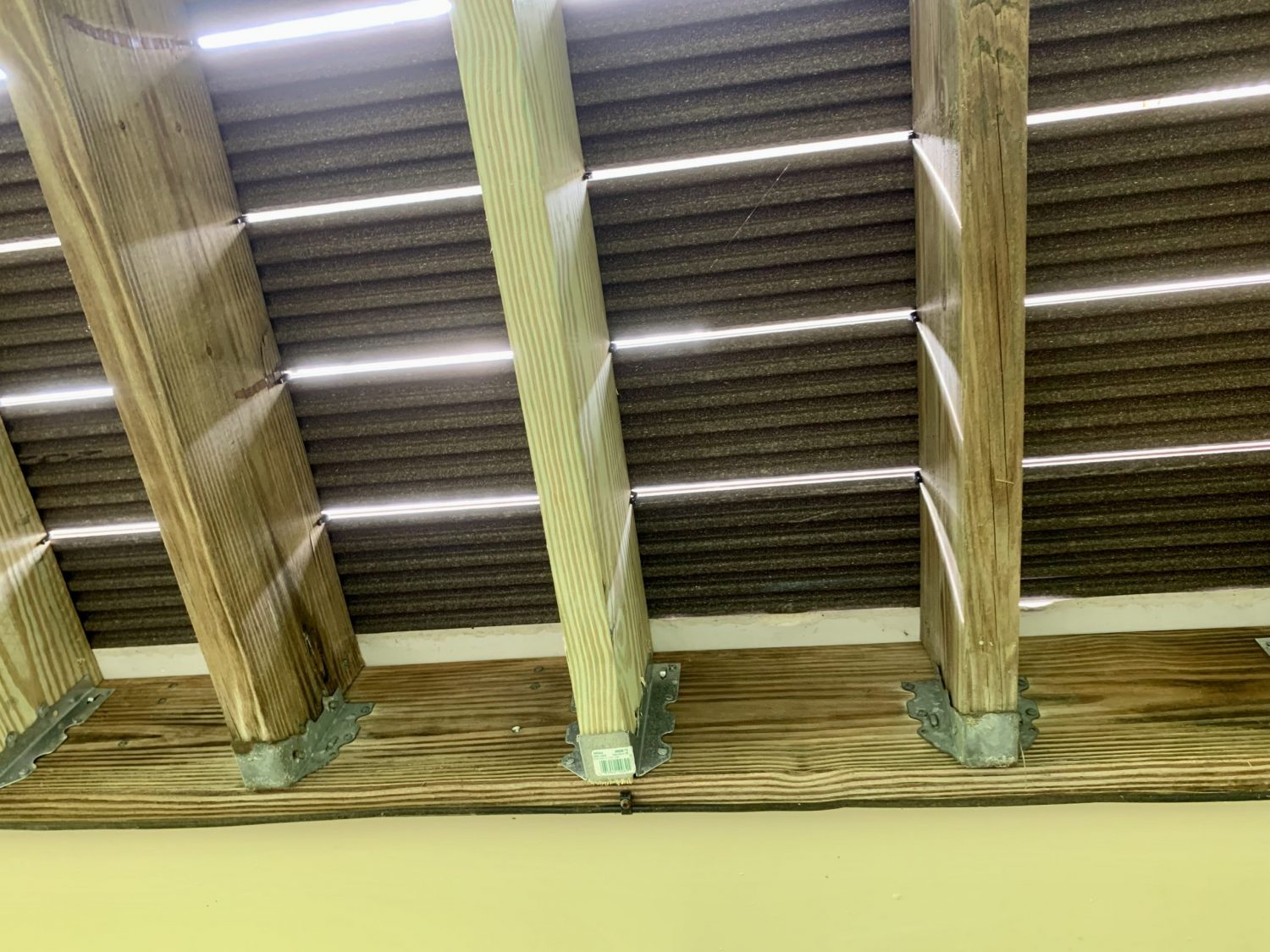 Timber screws were anchored to the support beams and the vertical supports that were cracked or split were replaced.