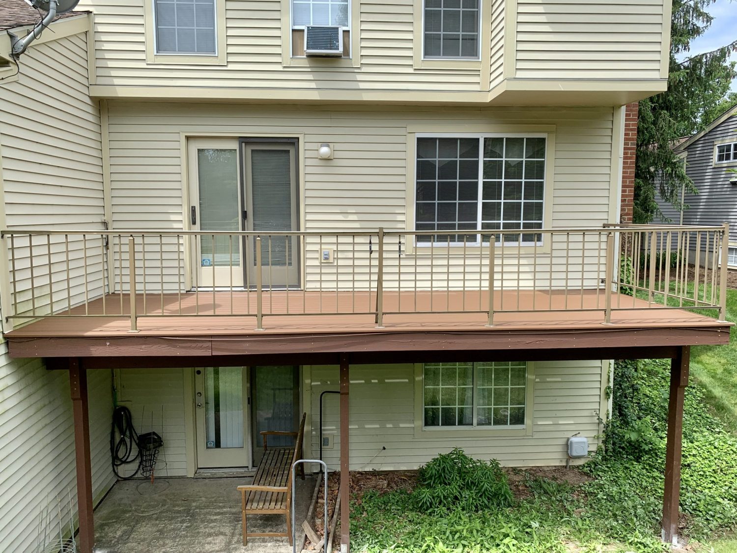 We had to remove the had railings to install the new composite decking and then reinstall the handrails once completed.