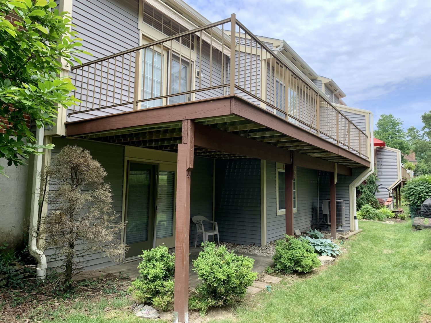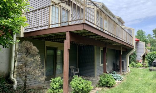Our carpentry team was recently hired to perform extensive repairs on the decks of eight apartment buildings, with 4-6 units per building. The decks had begun to rot and warp due to weather exposure and simply their age. The connection joints that connect the wooden boards to the support posts were also failing due to rust. The project took about 2 months to complete, and involved essentially replacing the entirety of the decks, aside from the support beams.