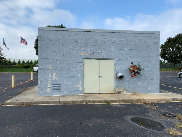 At the outset, the building was in significant need of attention. The exterior surfaces were weathered and deteriorating, with peeling paint on block walls, chalky and faded metal siding, and rusted or faded safety features such as bollards, railings, and valves. Addressing these conditions required thorough surface preparation, including pressure washing, hand cleaning, scraping, wire brushing, and grinding of rusted areas. Bare and corroded spots were spot-primed, and all previously caulked seams and voids were re-caulked to ensure a clean and sealed finish.