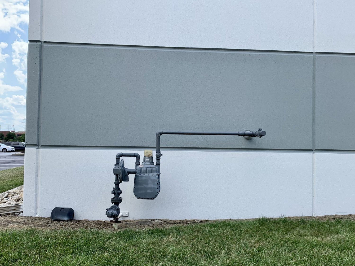 The project started with pressure washing and scraping any loose chips before painting. The prep work involved cutting out/scraping the old caulk from the current expansion joint seams. Once it was all of the old caulk was scraped, we installed new backer rods and fresh caulk in all of the expansion joint seems. Then the building was painted in a new color scheme with multiple colors. The areas being painted included: concrete wall panels, doors, door frames, garage doors, bollards, meters that were previously painted, gutters and downspouts.