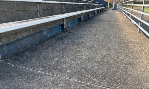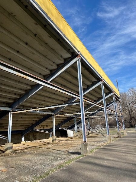 The facility—used for football, soccer, track and field, and other athletic events—had recently undergone major upgrades, including new turf and other amenities. However, the dated and deteriorating paint on structural elements left the space looking unfinished and in need of a professional refresh to match the newly upgraded features.