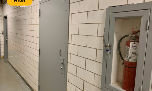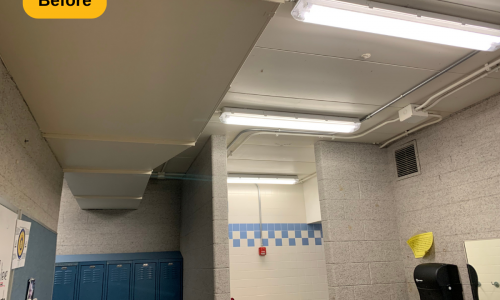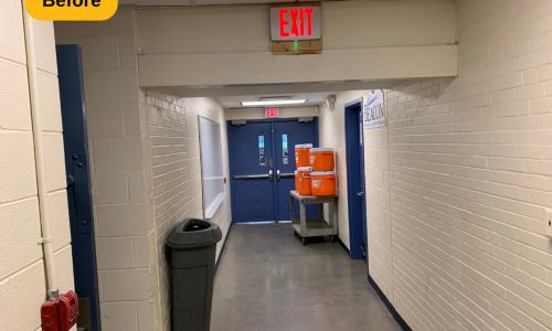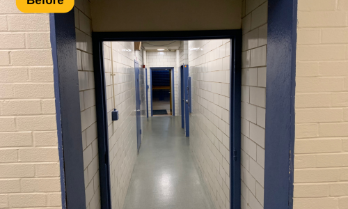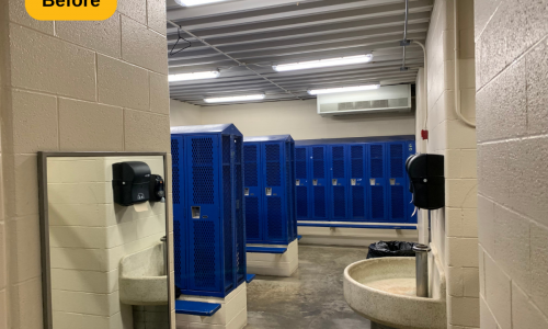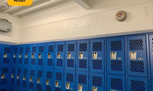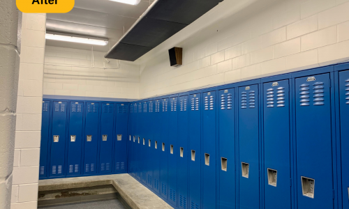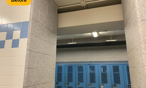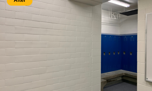 We were contracted to paint the locker rooms at Madeira High School in Cincinnati, Ohio. The locker rooms and parts of the hallway areas needed some brightening up, and a fresh coat of paint is always a great solution. The prep work included spot priming and full priming certain areas, along with wiping down the door and trim.