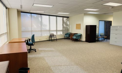 The carpentry team removed 2,050 square feet of carpeting and the old cove base trim from the main office area and two private offices. The areas were prepped using a power floor sander, scraping and sanding the old residue on the walls from the cove bases. Once all areas were prepped, the new cove base trim was installed, along with the new charcoal carpeting in the main office area and the two private offices. This whole project took about a week to complete.