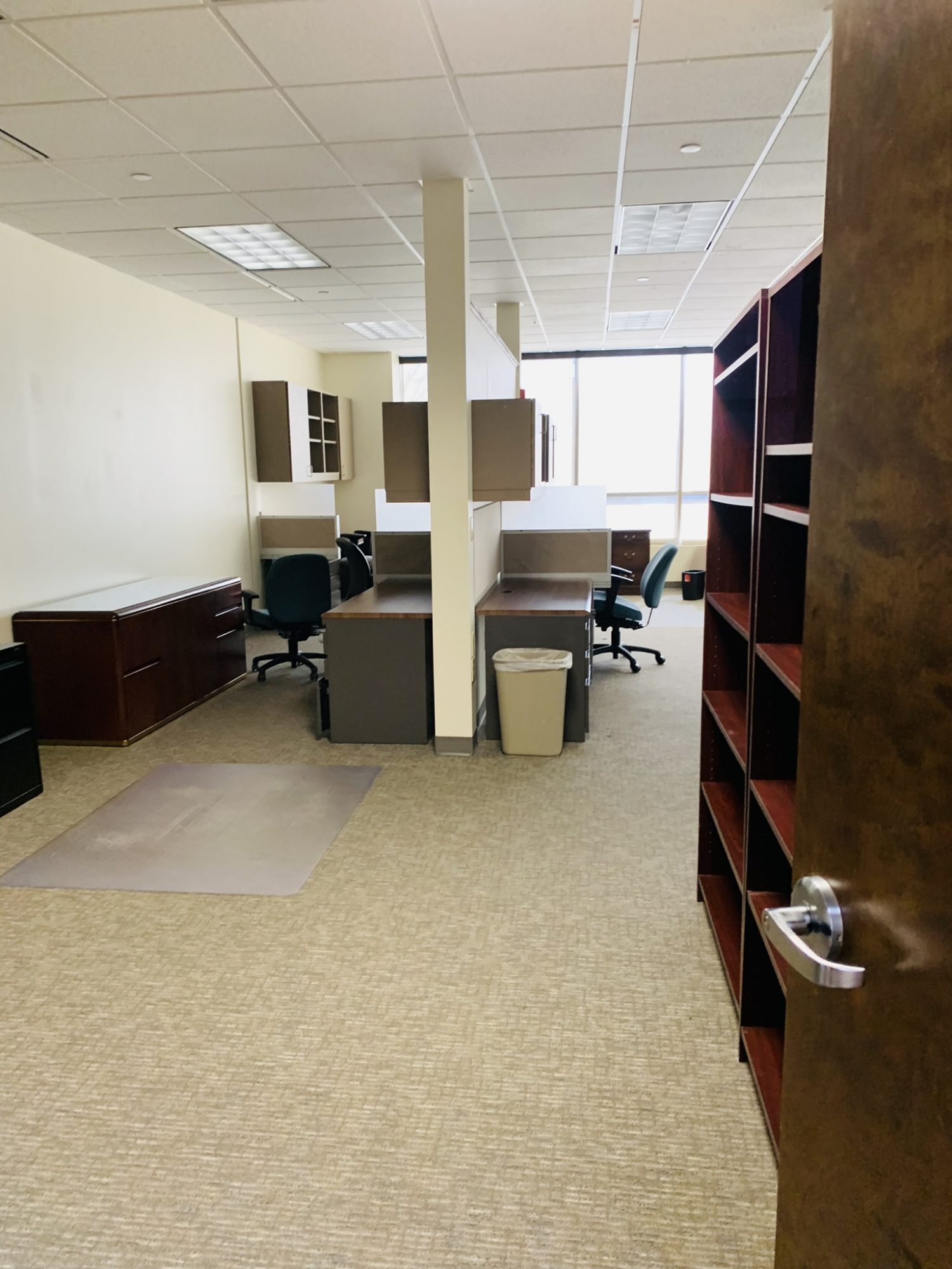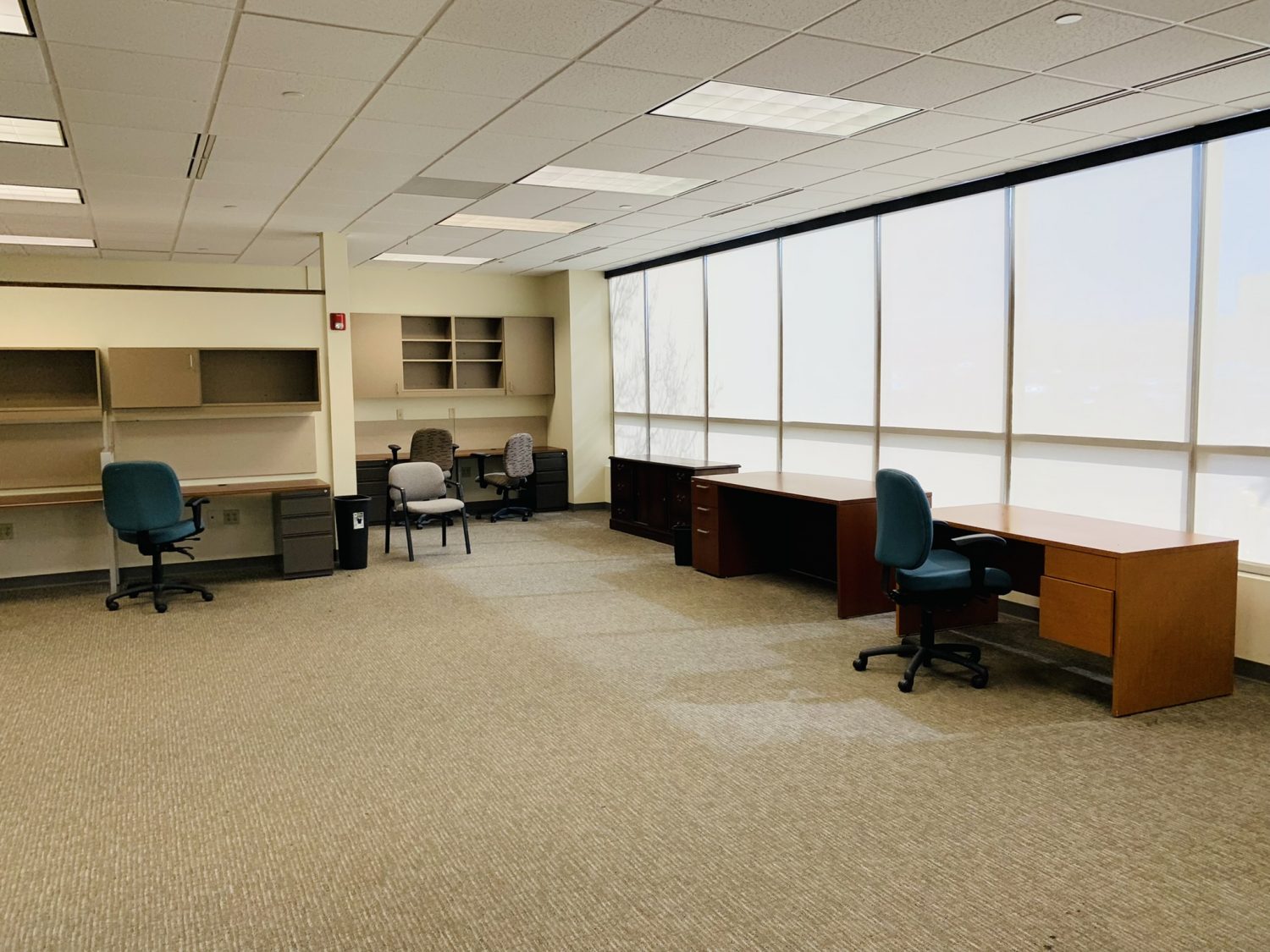 This project involved the interior of an office suite in a larger office building located in downtown Cincinnati, OH. The office suite is about 2,300 square feet, containing a large open area and multiple private offices. The office suite had old, outdated carpeting. The walls were in need of a lighter coat of paint and some minor repairs due to everyday damage. We utilized both our painting and carpentry teams for this job.