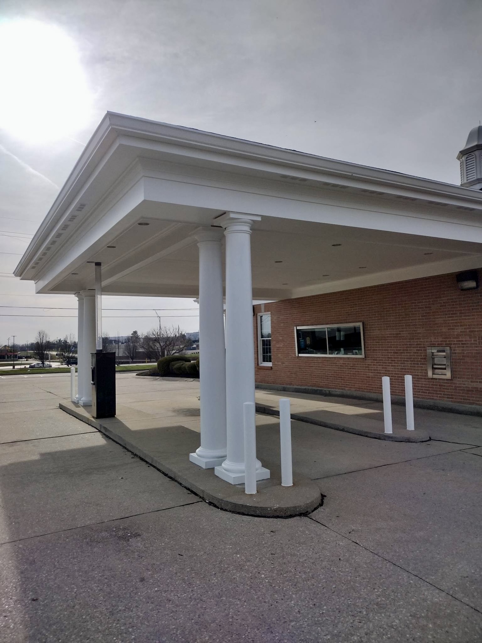 We were contracted to give a fresh repaint to the Heritage Bank in Hebron, Kentucky. We painted the drive-through, bollards, front trim, overhang ceiling, columns, and window boxes.