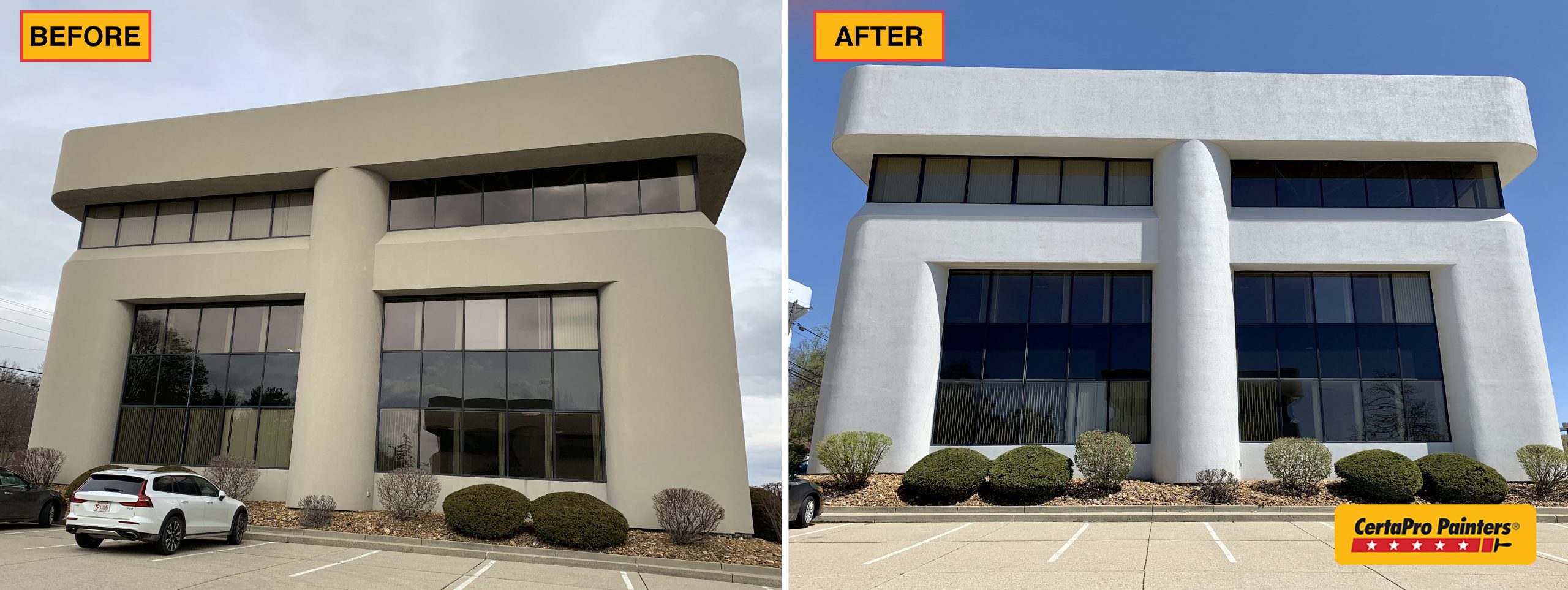 Our team was hired to paint the exteriors of two office buildings in Fort Wright. Before painting, the exteriors needed to be pressure washed and caulked, as well as primed.