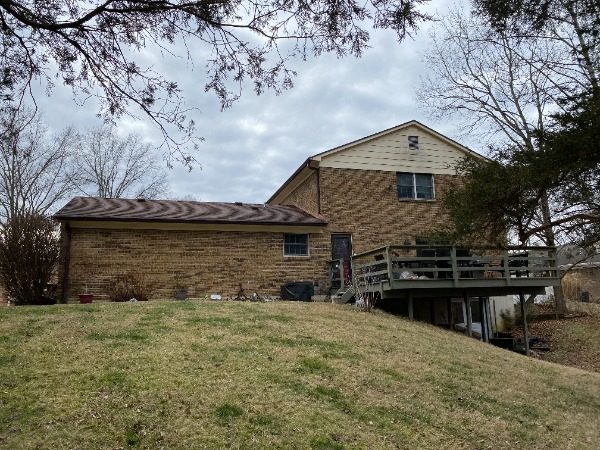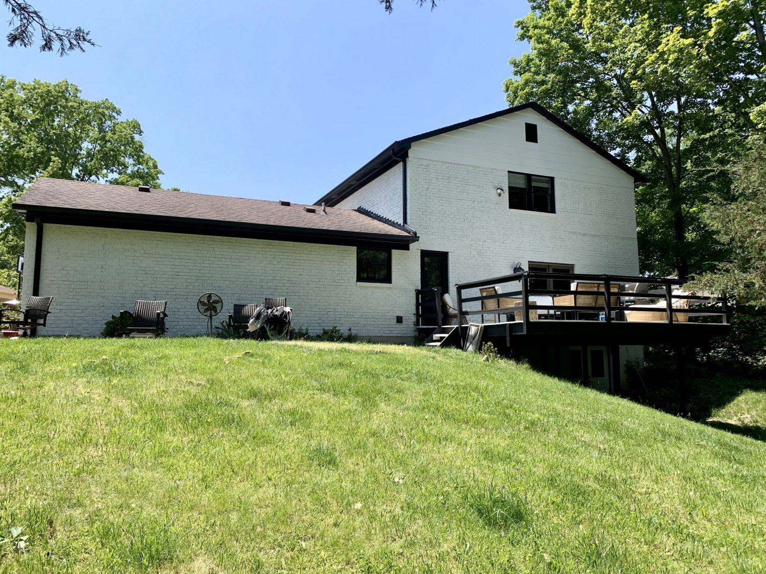 Description of Project:This large brick home was in need of a completely new look. The brick was still the original color with a light yellow trim and reddish/maroon accents- shutters, doors, etc.