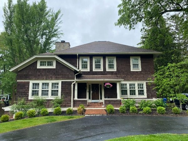 In August 2023, CertaPro Painters® of Cincinnati completed a two-week exterior restoration project for a beautiful home in Indian Hill, OH. The property featured brown wood siding, white trim, and a large deck with a unique gazebo, all of which had experienced wear over time. The wood siding had faded and showed signs of separation, while sections of trim required repair and reinforcement.