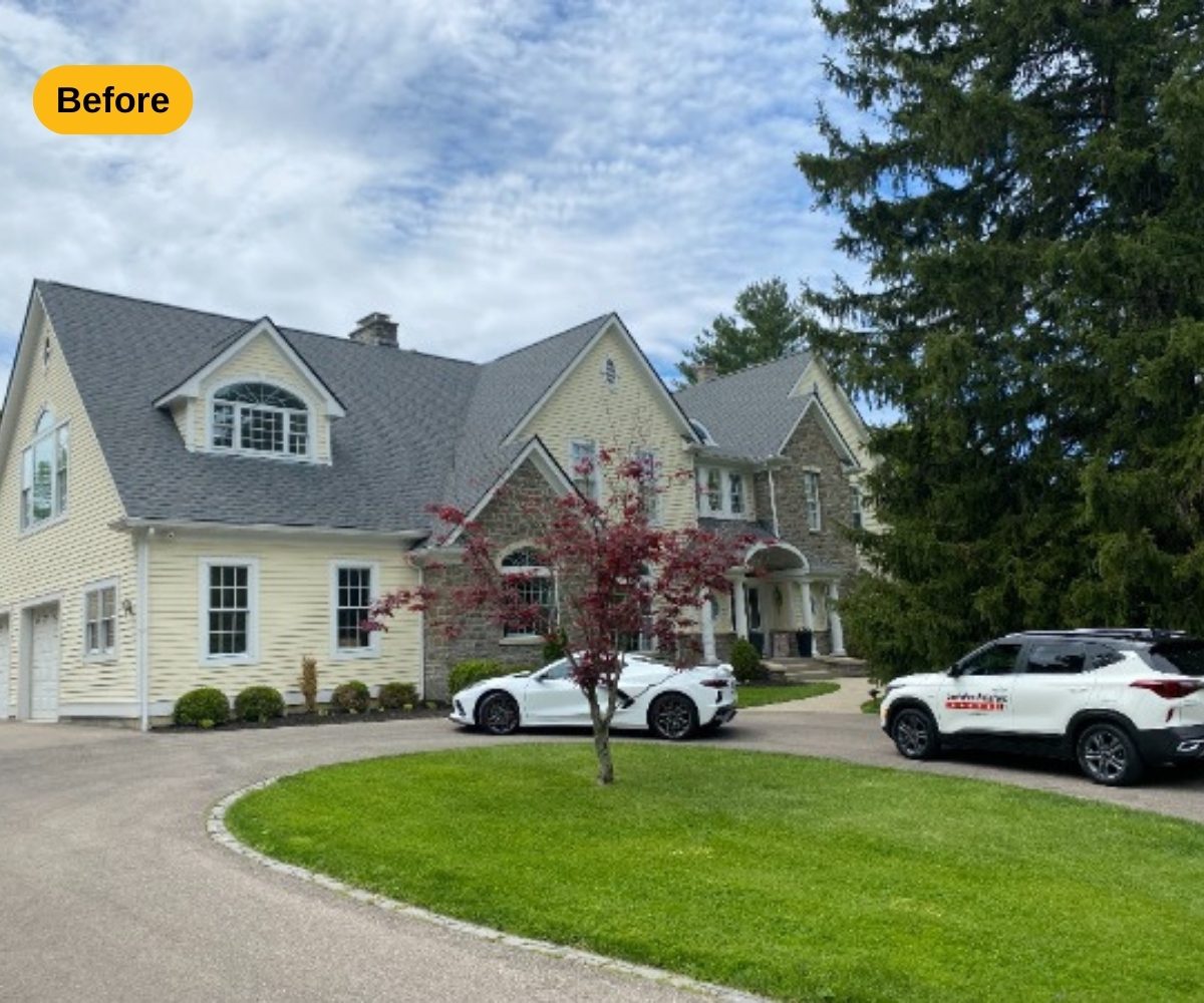 This beautiful home is located in the Indian Hill community of the Cincinnati area. The homeowners were in the process of moving in when we were contracted for the project on the home. The exterior of the home and garage was an outdated light yellow color. The interior of the home was being completely redone so a fresh coat of paint on was needed throughout many different rooms.