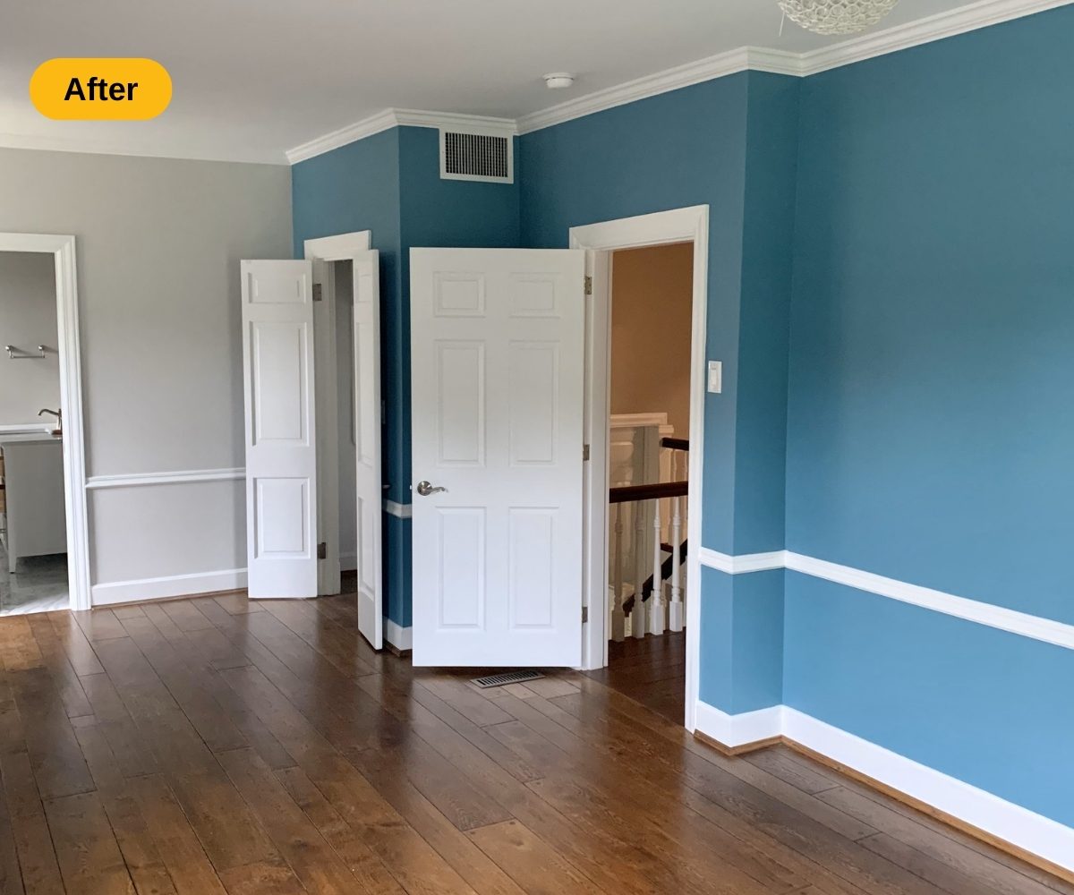 The interior then involved painting all ceilings, rooms, trim and both sides of doors, in addition to the inside of the closets and garage.