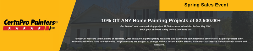 *Discount must be taken at time of estimate. Offer available at participating locations and cannot be combined with other offers. Eligible projects only. Promotional offers have no cash value. All promotions are subject to change without notice. Each CertaPro Painters® business is independently owned and operated.
