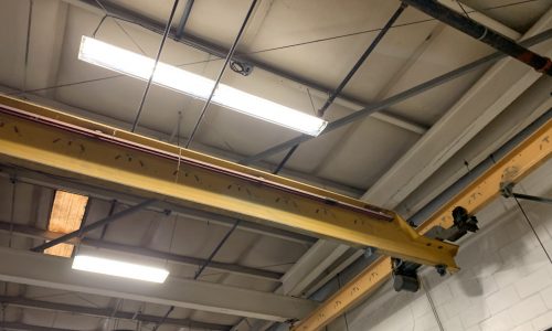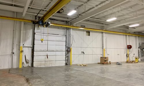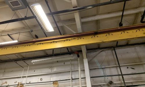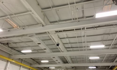 We used lifts inside the facility. There were also multiple colors on the different beams and crane. We used a special product on the ceiling- dryfall – which is used in many different warehouse facilities. It involves high volume coverage with minimal overspray.