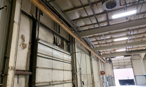 The project involved prepping the metal surfaces that had peeling paint, rust and the smoke damage, on parts of the ceiling. The metal surfaces included- ceiling, man doors, OH doors, crane and the vertical beams along walls, and freestanding beams. We removed the peeling paint and then primed the specific areas accordingly. We also cleaned all of the cobwebs and dust with an air compressor. Then we performed the degreasing process in certain areas.