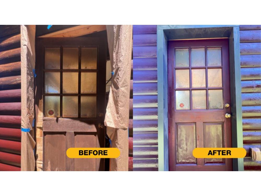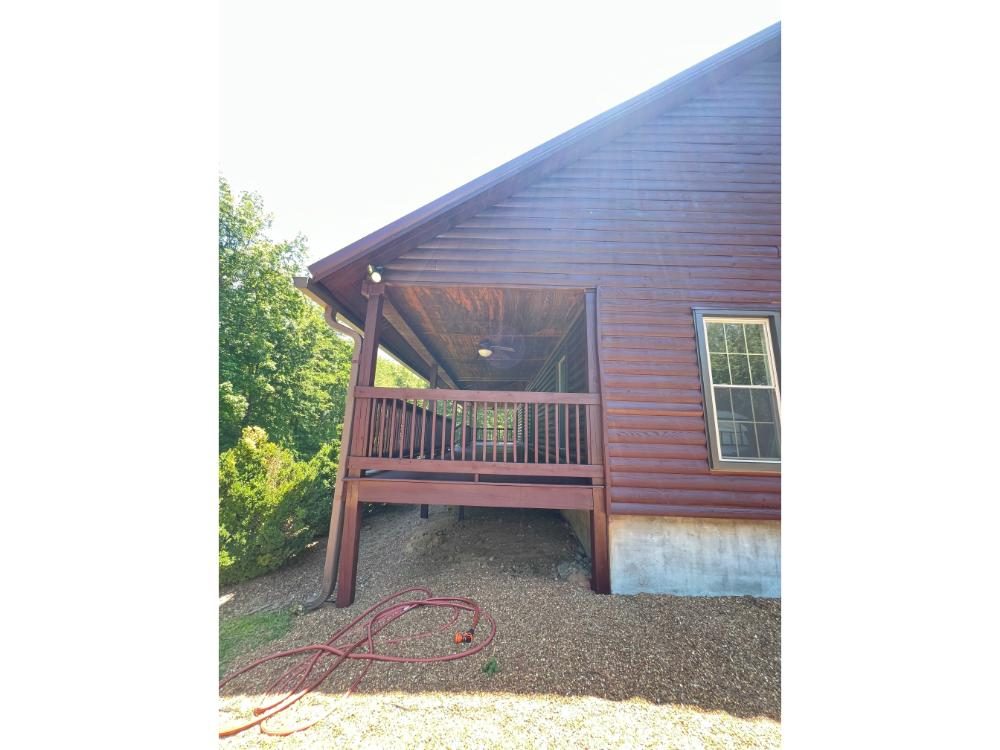 We painted the cabin and the decks. The product we used was Woodscapes Transparent stain in the color of Mahogany.