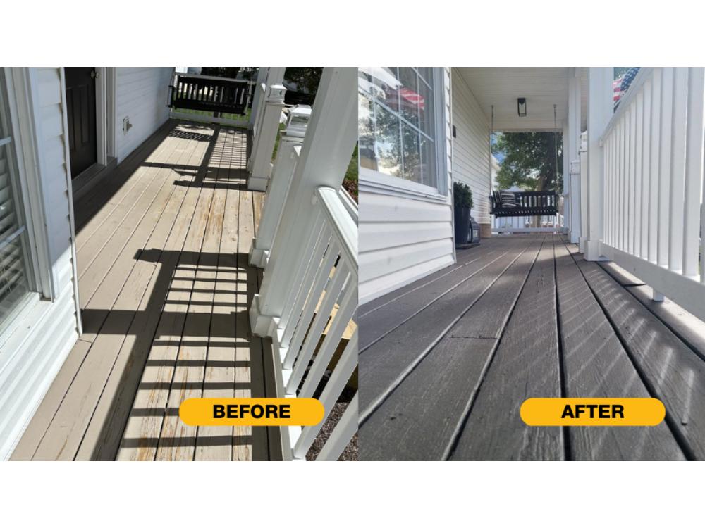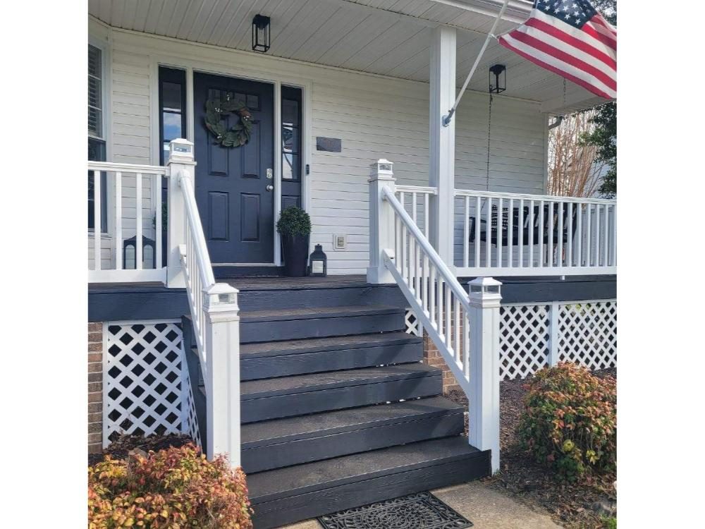 We painted the shutters, deck, and porch rails. The shutters and deck were changed to TriCorn Black.