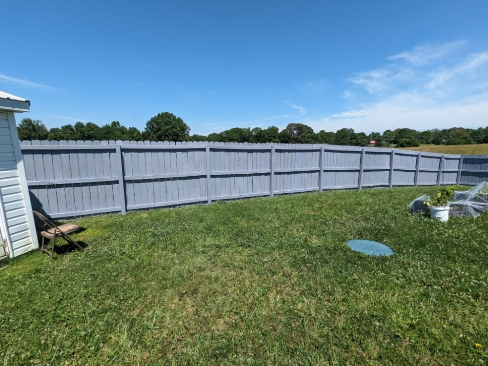 We painted the fence and deck. The product used was Super Deck Solid in the color of Faded Denim.