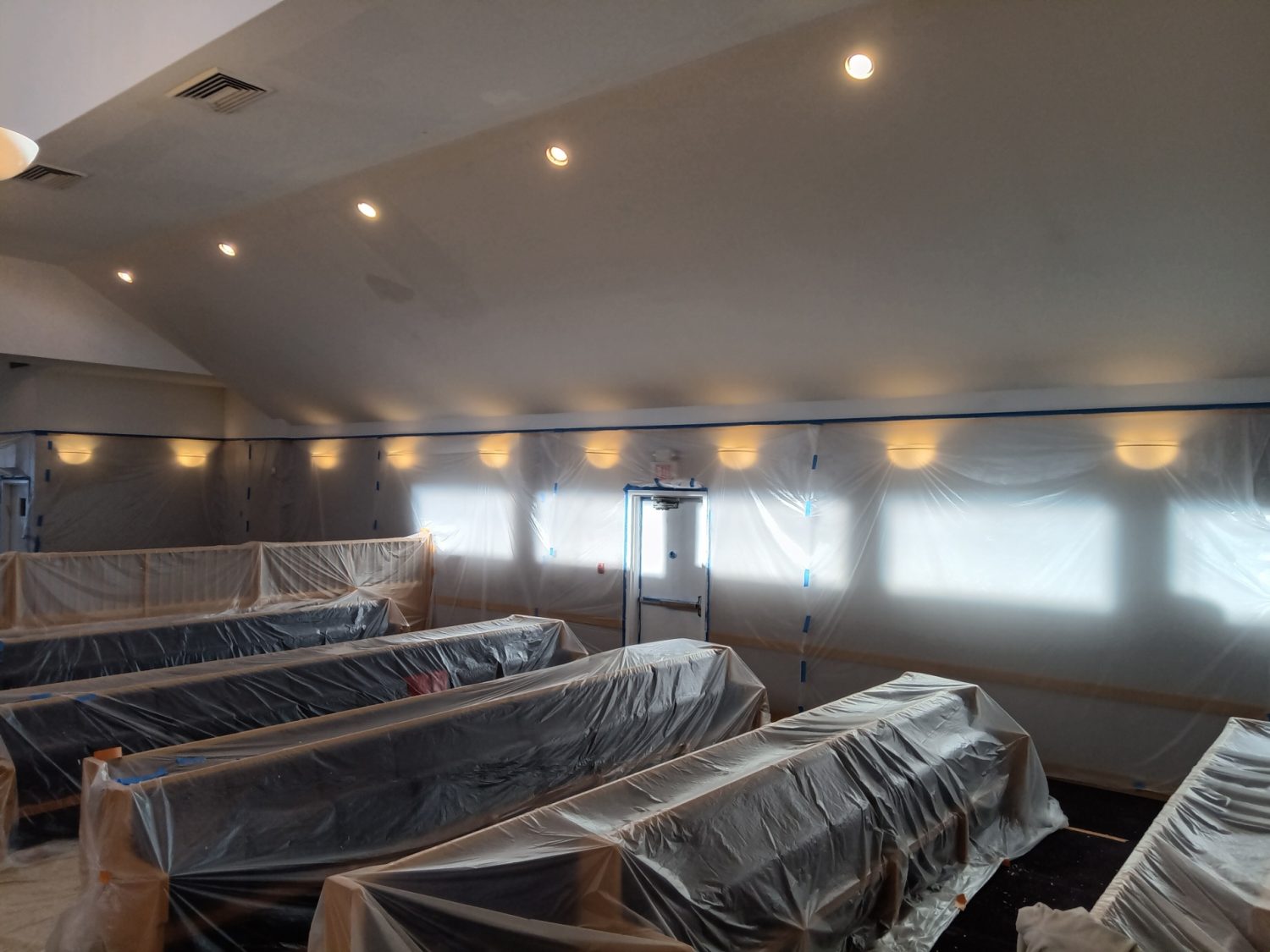 Upon our initial assessment, we found that the facility’s ceilings and walls were marred by extensive cracks and water damage/staining, presenting a canvas in desperate need of rejuvenation. Recognizing the significance of this sacred space, we embarked on a mission to restore it to its former glory.
