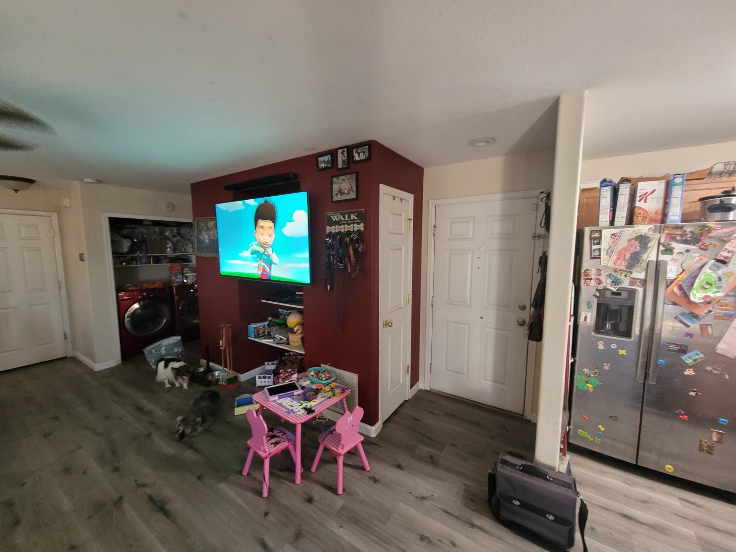 We used Duration Home from Sherwin Williams on the walls, which is an exceptionally cleanable paint that can endure an incredible number of scrub cycles. This paint should hold up very well to the children and dogs in the home and provide many more years of beauty!