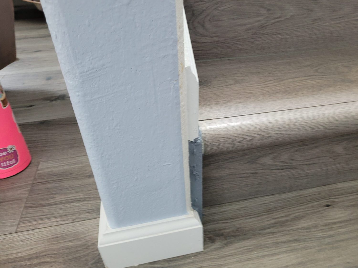 Upon arrival, it was evident this home and been lived in by an active family with children and dogs. Multiple surfaces required drywall patching, varying from normal nicks and dings to repairing water damage and larger holes. We repaired several bullnose corners as well. Additionally, the walls were dirty, and had discolored over time, especially closer to the ground where kids and dogs touched it more frequently. The paint was not washing anymore without discoloring and disintegrating.