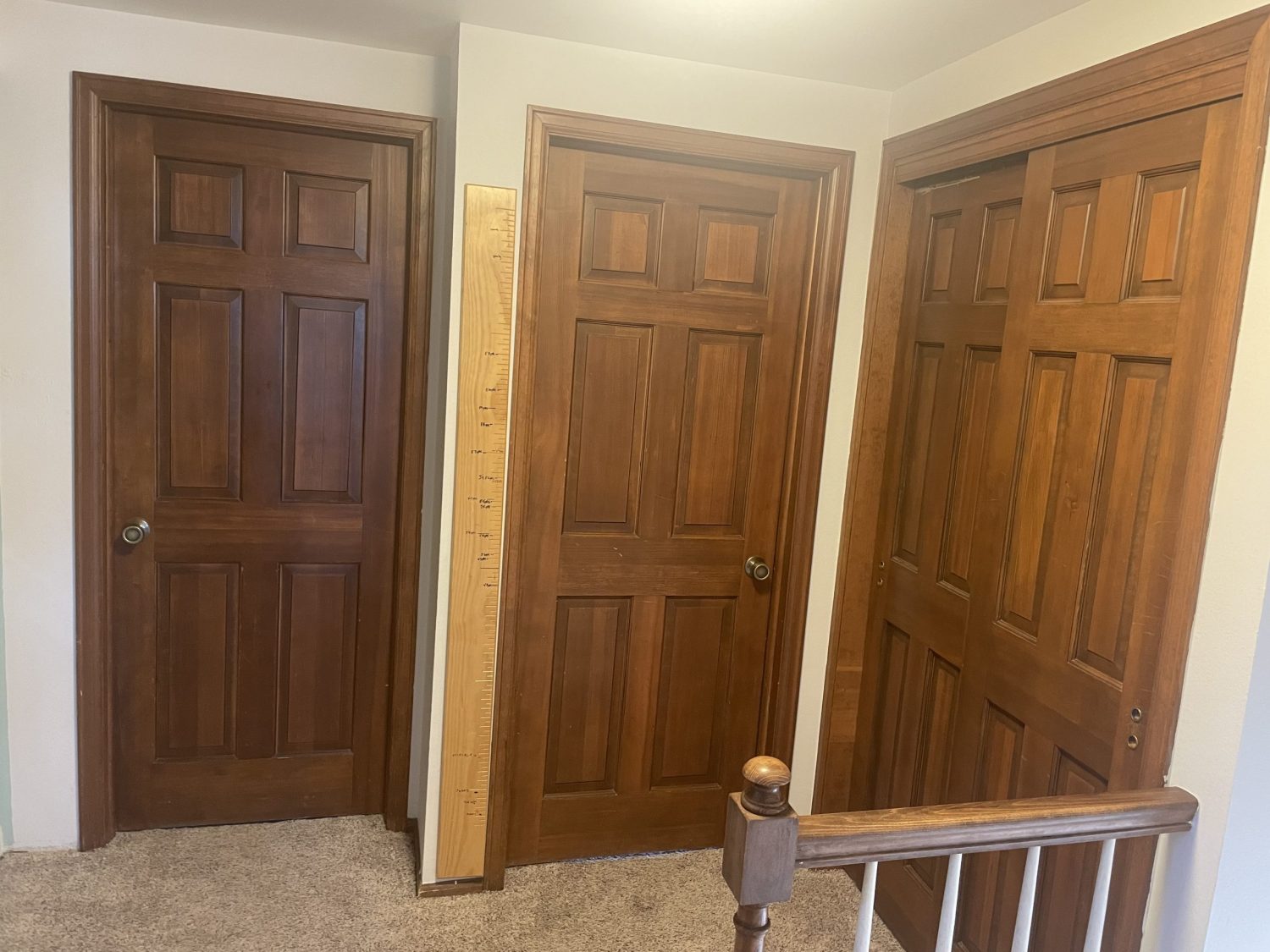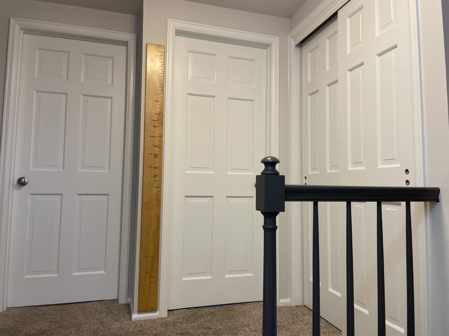 The transformation was striking. The solid black railings immediately drew attention, providing the “wow” factor the homeowner had envisioned. The white doors and trim brightened the space and complemented the modern aesthetic. Together, these changes elevated the home’s overall look and gave the upstairs landing a fresh, updated feel.
