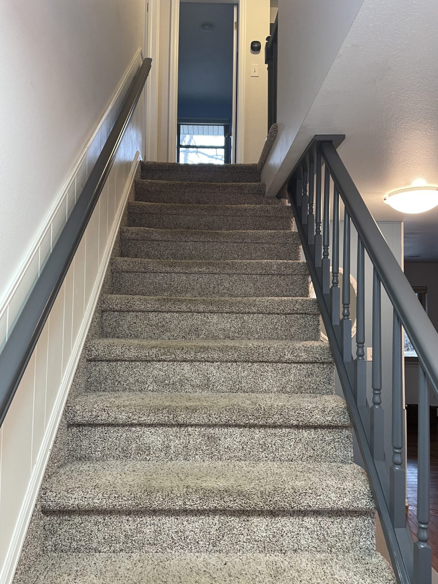 Choosing the right color palette for a project like this can be daunting. To make the process easier and ensure the homeowner’s satisfaction, CertaPro Painters brought in their experienced color consultant. Together, they selected modern, complementary colors for the doors, trim, and banister that aligned with the homeowner’s vision. The black railings provided a bold contrast, while the white doors added a clean, timeless touch.
